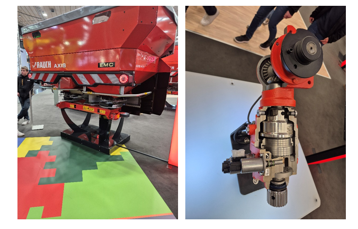 El segmento de fertilización mostró uno de los avances tecnológicos más estratégicos, impulsados por la necesidad de mejorar la eficiencia y cumplir normas ambientales cada vez más estrictas, especialmente en el modelo productivo europeo. Entre los desarrollos más destacados, RAUCH (Figura 6) presentó innovaciones premiadas con medallas de plata, orientadas al control fino del ancho efectivo, la velocidad de los discos y el manejo del borde, incluso en esparcidores accionados mecánicamente. Sistemas como VarioSmart permiten ajustar desde cabina el comportamiento de los discos, corregir desvíos por viento o granulometría y modificar el patrón de distribución en tiempo real, lo que representa un salto respecto a los sistemas tradicionales. La empresa continúa ampliando su paquete digital incorporando sensores y algoritmos que adaptan automáticamente la máquina a variaciones en textura y flujo del insumo.