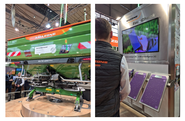Figura 7. Fertilizadora centrifuga AMAZONE AutoSpread, que utiliza radares para ajustar automáticamente en tiempo real la distribución del fertilizante, la primera abonadora autocorrectiva, capaz de adaptarse a la variabilidad del producto sin necesidad de pruebas de bandejas a campo. Se complementa con EasyMatch, aplicación móvil con inteligencia artificial que identifica el fertilizante a partir de una imagen y ofrece recomendaciones de ajuste precisas. Ambos sistemas optimizan el uso de nutrientes, mejoran la eficiencia de aplicación y reducen el tiempo de configuración.