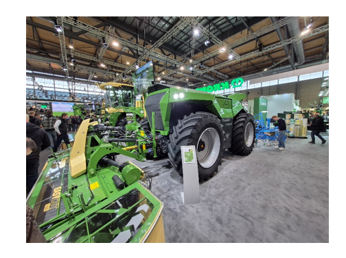 En el ámbito de la maquinaria pesada, KRONE (Figura 12) y LEMKEN presentaron el robot autónomo VTE 3.0, parte del proyecto Combined Powers. Se trata de una unidad de tracción sin operador, con arquitectura diésel/eléctrica o sea hibrida y gestión inteligente de implementos mediante el sistema iQblue. Este ecosistema permite monitorear flujo de trabajo, deslizamiento, profundidad y parámetros operativos en tiempo real, aplicando ajustes automáticos para maximizar precisión. Para la producción extensiva, su principal aporte es la disponibilidad de operación prolongada autónoma, la reducción de la demanda de mano de obra y la posibilidad de integrar implementos de siembra o laboreo con consistencia y repetibilidad superiores a las de un sistema convencional.