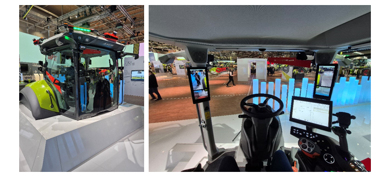 Además, varias empresas exhibieron kits de automatización para tractores, permitiendo convertir máquinas ya existentes en semi-autónomas o controlables a distancia. Destaca el kit OutRun de PTx / Trimble instalado en un Fendt 800 Vario, que habilita conducción autónoma tanto en tareas de recolección con tolva, como en laboreo, gracias a sensores de detección de obstáculos y planificación inteligente de rutas. También se presentó una solución de guía por carriles en cultivos (RowPilot) desarrollada por Fendt en colaboración con PTx, basada en inteligencia artificial y reconocimiento de hileras para controlar de manera precisa equipos, incluso en presencia de malezas o variaciones del terreno. A su vez, Fraunhofer IOSB mostró un kit retrofit que permite operar un tractor de forma remota hasta a 200 km, abriendo la posibilidad de manejar flotas desde un centro de operaciones sin necesidad de un conductor a bordo. Este tipo de soluciones representan un camino pragmático para modernizar tractores existentes, optimizar mano de obra, y avanzar hacia un modelo agrícola más automatizado y eficiente.