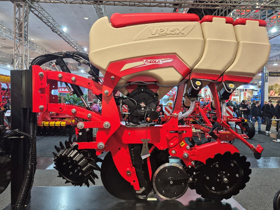 También se expandieron los sistemas con múltiples cajones para microgranulados, fertilizantes sólidos y semilla, una configuración cada vez más buscada para colocar arrancadores, micronutrientes o bioestimulantes en dosis precisas durante la implantación. Marcas como Amazone, Kuhn, Monosem, Sola (Figura 4), Väderstad, Lemken y Horsch incorporaron dosificadores eléctricos de alta precisión y control ISOBUS, posibilitando una regulación fina acorde al ambiente y a la densidad aplicada. En conjunto, esta tendencia consolida una implantación más tecnificada y eficiente, con una nutrición inicial mejorada, orientada y de mayor homogeneidad en la emergencia del cultivo.