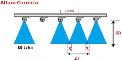 Figura 2. Posiciones, distancias y superposiciones (en cm) correctas de las pastillas en el botalón pulverizador (vista frontal) (Geosistemas SRL, 2017).