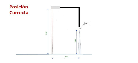 Figura 1. Posiciones y distancias (en mm) correctas del cuerpo emisor-sensor y del barral pulverizador (vista lateral) (Geosistemas SRL, 2017).