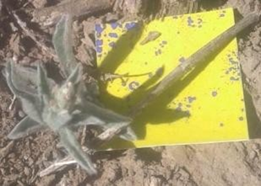 Figura 5. Tarjeta de 6.25 cm2 “pintada”, al lado de Gamochaeta sp. Eficiencia