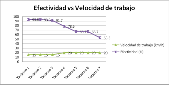Tabla 1. Tarjeteo con distintas configuraciones y a dos velocidades (fuente: elaboración propia)