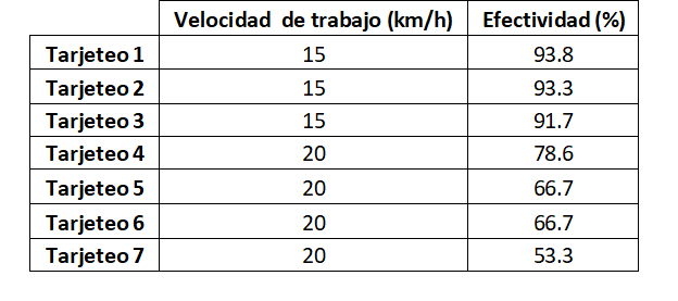 “Todas las pasadas realizadas a 15 km/h tuvieron una efectividad mayor a las realizadas a 20 km/h, independientemente del tipo de configuración elegida”